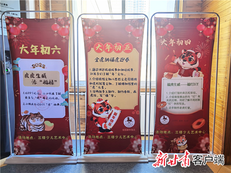 “后續(xù),還有大年初三的‘靈虎送福——虎紙漿畫DIY ’活動(dòng)、大年初四的‘?;⑸?mdash;—福燈DIY ’活動(dòng)、大年初五的‘金虎納福虎迎春’活動(dòng)、大年初六的‘虎虎生威添‘福祿’活動(dòng)’。”省博物館社會(huì)教育部主任盧冬介紹,每場(chǎng)活動(dòng)面向約30名小朋友開展,經(jīng)過前期策劃準(zhǔn)備,除了省博物館社教部的10余名工作人員,給孩子們普及有關(guān)虎和北京冬奧會(huì)的知識(shí),還有來自西北師范大學(xué)、蘭州二十七中等校的學(xué)生志愿者,指導(dǎo)輔助孩子們玩游戲、做手工。