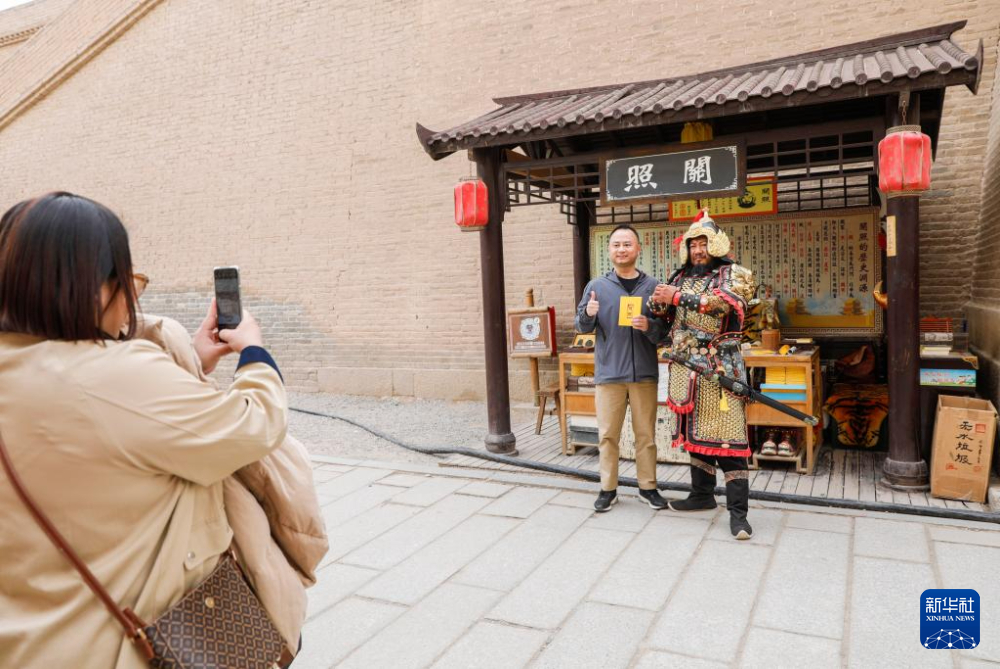 “關(guān)照”可理解為古時候的“護(hù)照”。嘉峪關(guān)的游客可以買上一份文創(chuàng)產(chǎn)品“關(guān)照”,聽“關(guān)長”李森宣告自己“合法通關(guān)”,模擬一場告別故土、前往西域的出關(guān)儀式。