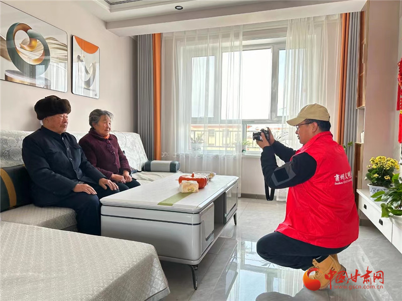 “大爺笑一笑,牽著大娘的手……”攝影志愿者們下村入戶,上門為村民拍攝全家福,用鏡頭為群眾定格幸福團(tuán)圓的瞬間,留住溫馨美好記憶。從選擇服裝到整理發(fā)型,從選取角度到調(diào)動(dòng)情緒,志愿者們忙的不亦樂乎,在他們的引導(dǎo)和鼓勵(lì)下,老兩口由開始的緊張到后來的自信從容,一幕幕美好的生活片段被記錄了下來。