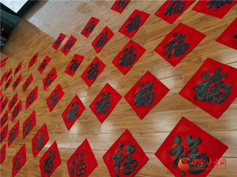 紅福滿地、墨香四溢,群眾們圍攏在書案前,挑選自己喜愛的聯(lián)句請(qǐng)書法家書寫。書法志愿者們激情洋溢、揮毫潑墨,將濃濃的新春祝福凝聚在筆端,一行行俊秀蒼勁的書法,一副副對(duì)聯(lián),飽含幸福吉祥,寄托美好希望,現(xiàn)場洋溢著濃濃的節(jié)日味道。