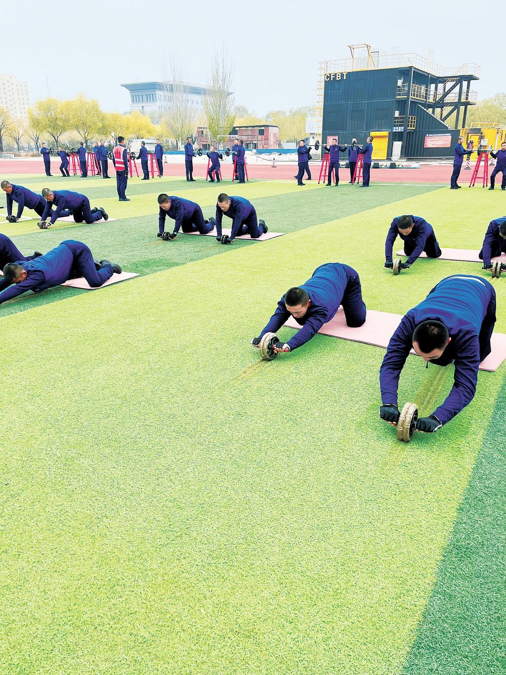 消防員體能訓練現場。省消防救援總隊訓練與戰(zhàn)勤保障支隊供圖