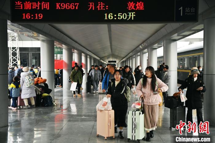 1月15日,“隴原學(xué)子游敦煌”敦煌文化研學(xué)季專(zhuān)列發(fā)班儀式在甘肅蘭州舉行,320名來(lái)自蘭州市中小學(xué)的學(xué)子們乘坐K9667次列車(chē),開(kāi)啟前往敦煌的研學(xué)之旅。九美旦增 攝