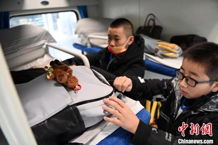 1月15日,“隴原學(xué)子游敦煌”敦煌文化研學(xué)季專(zhuān)列發(fā)班儀式在甘肅蘭州舉行,圖為學(xué)生在K9667次列車(chē)上。九美旦增 攝
