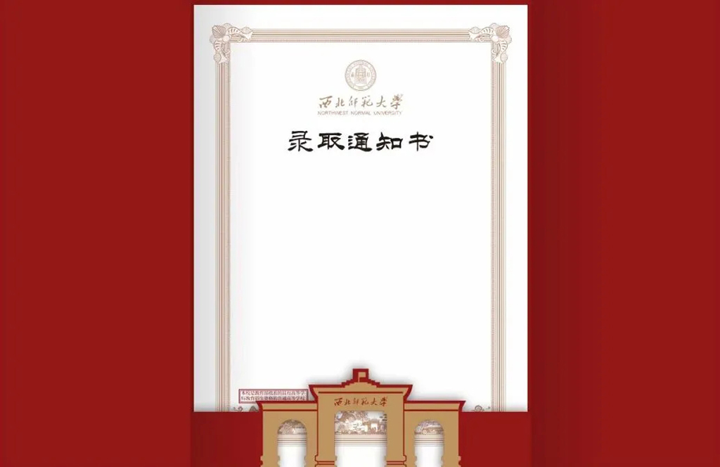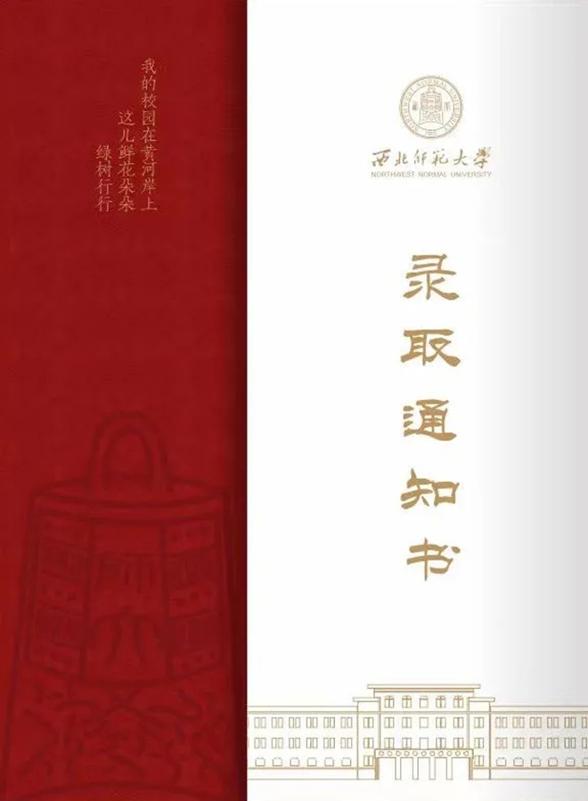2024年的本科生錄取通知書(shū)外層依然延續(xù)了傳統(tǒng)師大紅,搭配金色的文字,盡顯莊重大氣。內(nèi)里以白色為底,淺棕色為框,百廿師大的厚重底蘊(yùn)躍然紙上。