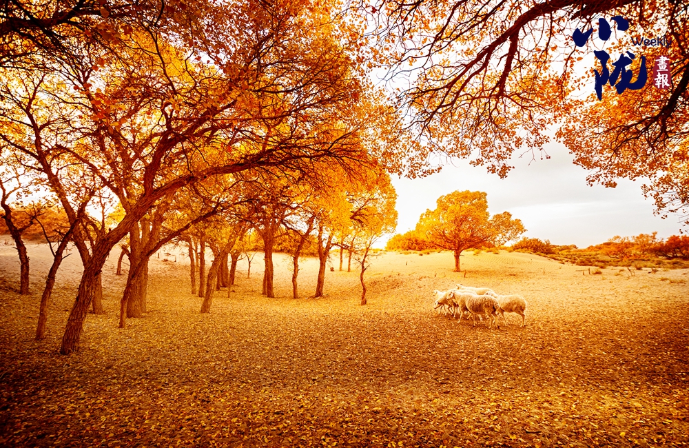 當(dāng)秋風(fēng)吹過(guò)金黃的胡楊樹葉,整片戈壁便成了被陽(yáng)光熔化的鎏金海洋,輝煌而凝重。這些古老的生命已經(jīng)在這片土地上存活了數(shù)千年,它們以“生千年不死、死千年不倒、倒千年不朽”的姿態(tài)站立成永恒的風(fēng)骨。