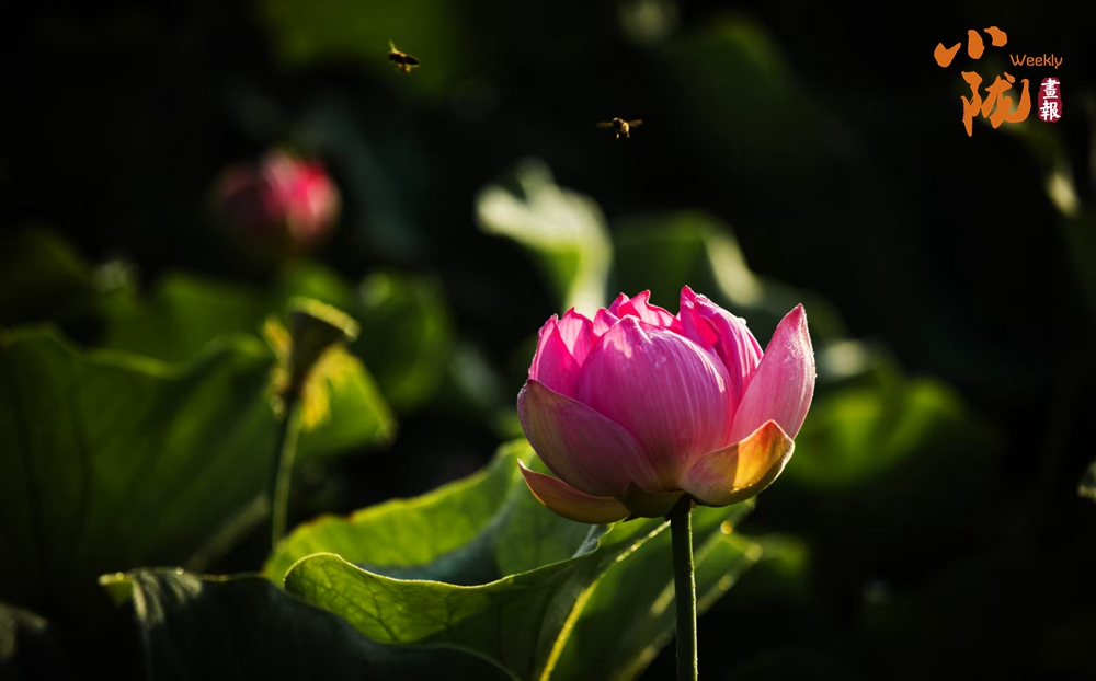 荷花成片盛開,偶有蜜蜂飛來飛去,時(shí)而駐足在花苞尖上,時(shí)而又快速飛向另一朵荷花,構(gòu)成了一幅靈動(dòng)的“蜜蜂戲荷圖”。水中的魚兒也不甘寂寞,穿梭在荷葉間,偶爾躍出水面,濺起朵朵水花,為這靜謐的荷塘增添了幾分生機(jī)。