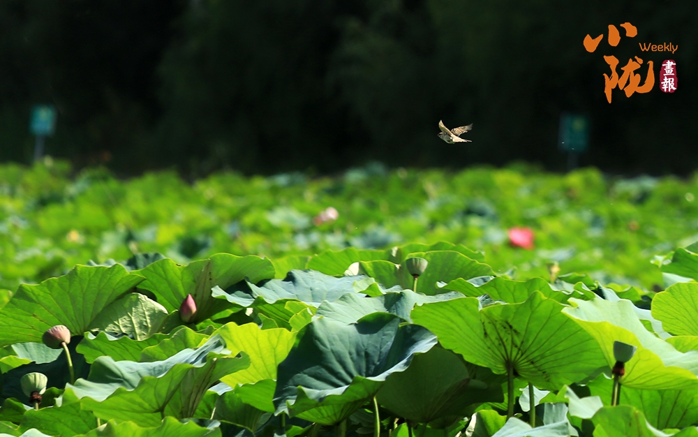 低頭凝望荷塘,荷葉像一把把撐開的綠傘鋪展在水面上,遮住了秋日的熱氣,給大地帶來一片清涼。荷花、睡蓮點(diǎn)綴其中,雀鳥在水天之間嬉戲盤旋,時(shí)而點(diǎn)水,時(shí)而落于荷花之上,于遠(yuǎn)處觀賞這份和諧景致,真是別有一番趣味。