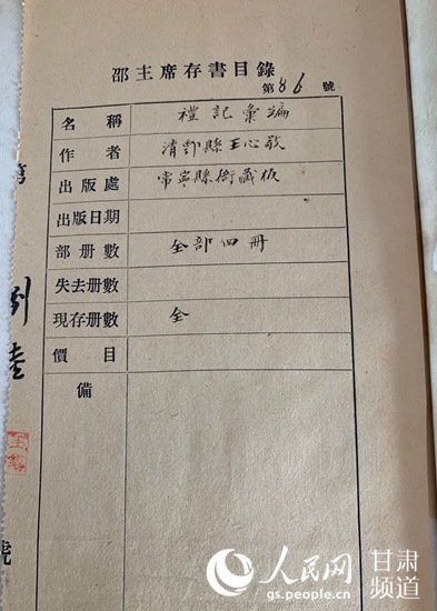 “力學廬藏書”為何保存在天水市?1937年抗日戰(zhàn)爭全面爆發(fā),日機輪番轟炸西安等城市,主政甘肅、陜西6年間自己節(jié)儉日常生活開支所搜購、珍藏的大批珍貴圖書怎樣才能免于戰(zhàn)火?邵力子先生十分焦慮。民國年間著名人士鄧寶珊、馮國瑞多次向邵力子先生“游說”,說明他們的家鄉(xiāng)天水市人文氣息濃厚、又地處西北一隅,屬抗戰(zhàn)后方,藏書環(huán)境較為安全,希望“以之捐贈天水,建館而公諸世”。經(jīng)過慎重考慮,邵力子先生決定將自己在西安的全部“力學廬藏書”運往天水,并由好友、著名學者馮國瑞負責接收、轉(zhuǎn)運。在那戰(zhàn)火紛飛的年代,要把幾十箱、數(shù)萬冊藏書從西安運到天水,確非易事。李東暉說,在當時陜西省政府主席及秘書長、天水縣長及教育局長等人的協(xié)助下,歷經(jīng)周折、分三次才將這批珍藏轉(zhuǎn)運成功,當時雇用鹽商的牲口、沿途由鄧寶珊將軍派部隊護送。