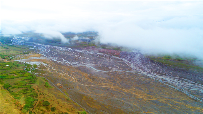 戈壁晚霞和暮鼓,疏勒河流古。聽(tīng)靜水流深,百轉(zhuǎn)千回,澤潤(rùn)荒原土。