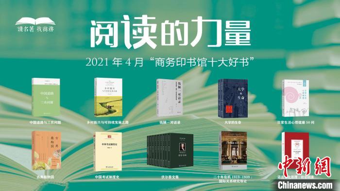 中新網(wǎng)北京5月9日電 (記者 應(yīng)妮)商務(wù)印書(shū)館2021年第4期“月度新書(shū)發(fā)布會(huì)”8日晚在線上舉行。4月的“商務(wù)印書(shū)館十大好書(shū)”隨之出爐:《中國(guó)道路與三農(nóng)問(wèn)題》《鄉(xiāng)村振興與可持續(xù)發(fā)展之路》《錢穎一對(duì)話錄》《大學(xué)的生命》《日常生活心理健康50問(wèn)》《古典植物園》《中國(guó)考試制度史》《伏爾泰文集》(全十卷)和《二十年危機(jī)1919-1939:國(guó)際關(guān)系研究導(dǎo)論》、《語(yǔ)言變化原理:社會(huì)因素》十種好書(shū)入選。
