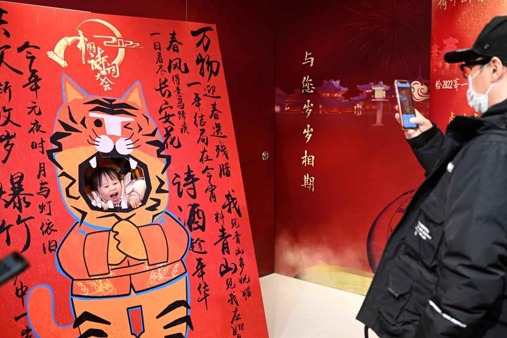 春節(jié)假期,作為文化節(jié)目《2022中國(guó)詩(shī)詞大會(huì)》的線下活動(dòng),詩(shī)詞市集在北京國(guó)貿(mào)商城舉行?;顒?dòng)邀請(qǐng)市民寫(xiě)下一句詩(shī),給2022年寄出一張?jiān)娫~明信片,帶動(dòng)詩(shī)歌熱潮,推動(dòng)詩(shī)詞文化走入百姓家。