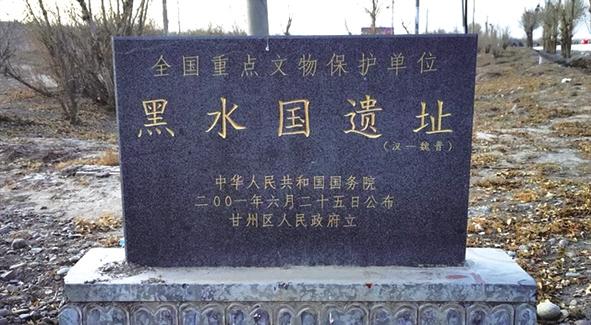 在于右任老先生寫詩后的自注,“甘州西黑水河岸古墳占地十余里,土人稱為‘黑水國’,掘者發(fā)現(xiàn)中原灶具甚多,遺骸脛骨皆長……”古黑水國遺址坐落在甘肅省張掖市甘州區(qū)西北17公里處,該遺址又稱黑水國城堡,俗稱黑水國,民間亦稱甘州老城,是“絲綢之路”上的著名驛站,距今有4000多年的歷史,是集漢唐古城、史前遺址、古寺院遺址、古屯莊、古墓葬為一體的龐大的甘州“歷史古籍”,也是集古代人文風光、沙丘、湖泊、蘆蕩、濕地為一體的河西“特色畫冊”,在考古界有“河西走廊文物寶地”之稱,1908年由俄羅斯考古學家和探險家彼得·科茲洛夫發(fā)現(xiàn)并發(fā)掘,它的發(fā)現(xiàn)是當時震驚中外的考古學大事件,2001年,古黑水國遺址被國務院公布為全國重點文物保護單位。