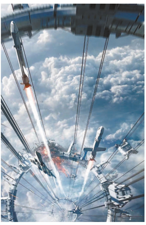 在科技層面,片中戰(zhàn)斗機(jī)、無人機(jī)空中大戰(zhàn)場面宏大驚險,MOSS人工智能的理性冷峻令人生畏,太空天梯的長鏡頭展示更是看得人起雞皮疙瘩;在幻想層面,這一部炸月亮、移地球,無一不是大手筆,用計算機(jī)延續(xù)人類生命的設(shè)定則直接追問生命本質(zhì),具有一定的哲學(xué)思辨。
