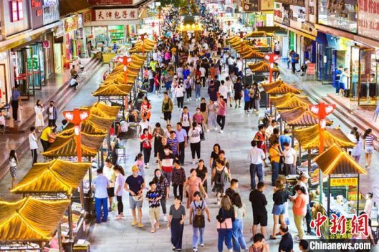 7月29日,游客在敦煌旅游工藝品一條街上漫步,體驗(yàn)濃郁的民俗風(fēng)情和敦煌文化?!⊥醣筱y 攝