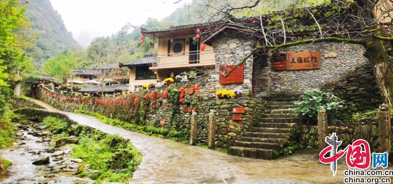 干凈整潔的人居環(huán)境、旖旎的山水風光、古樸的特色民居和深厚的文化底蘊,自從朱家溝村建成美麗鄉(xiāng)村以后,很快就聲名鵲起,吸引著越來越多的游客來這里休閑觀光旅游,看到家鄉(xiāng)的鄉(xiāng)村旅游紅紅火火,原先在縣城做生意的朱彥杰夫婦回到朱家溝,流轉(zhuǎn)了5戶村民的舊房進行改造,創(chuàng)辦了“五福臨門”民宿,不僅在家門口就實現(xiàn)了創(chuàng)業(yè),還延伸了一系列產(chǎn)業(yè)鏈,帶動村民實現(xiàn)了當?shù)鼐蜆I(yè)。