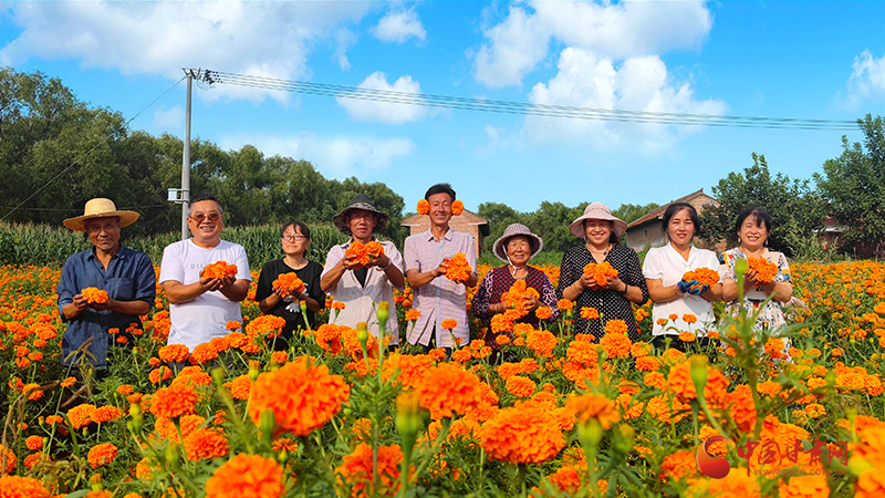 崇信:金色萬壽菊 美了環(huán)境富了民