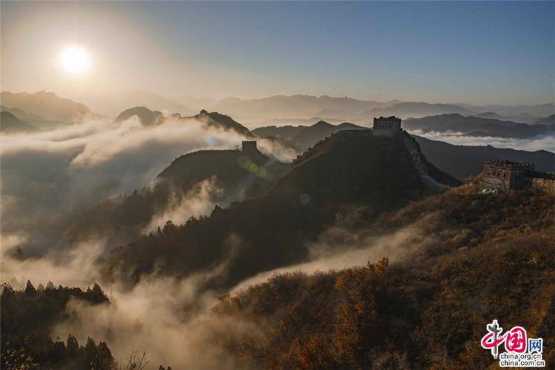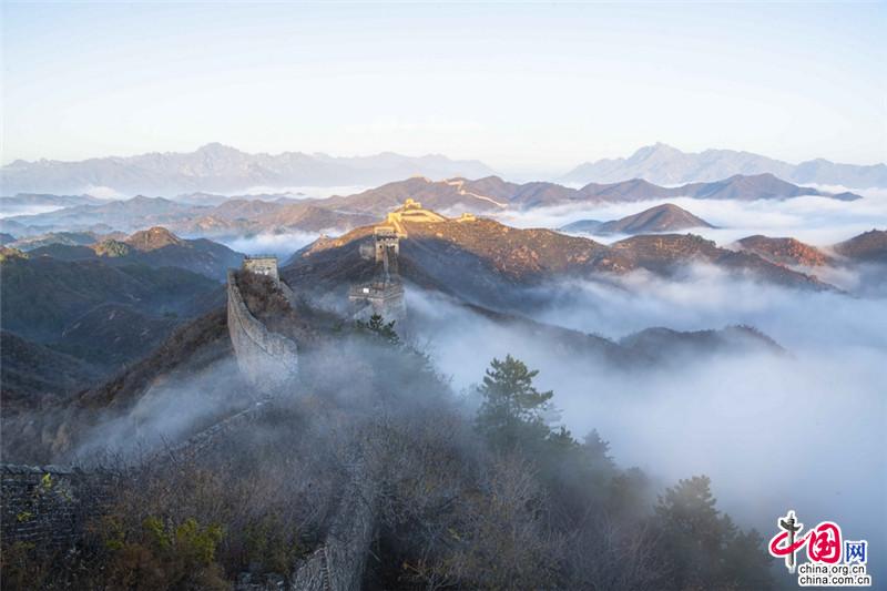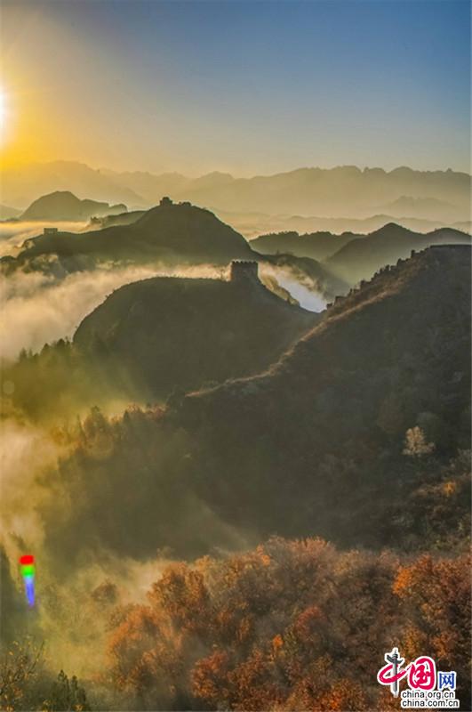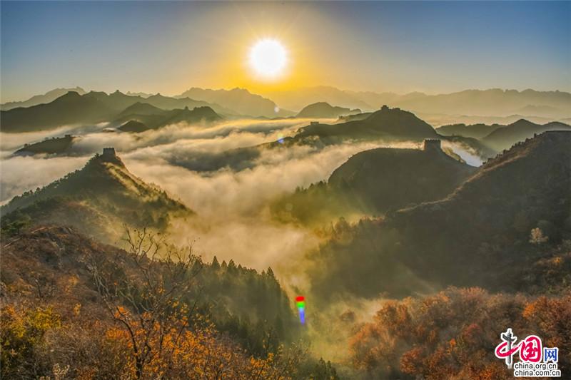 原標(biāo)題:晚秋中的金山嶺長城 云海日出彩葉羨煞人