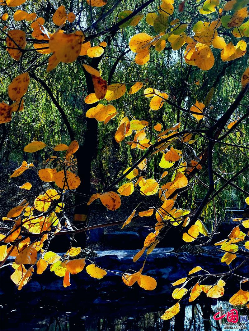 而圓明園的秋色,同樣不落秋之美。黃葉與殘垣相襯,透露出特有的滄桑與悲涼。它美得那么寂寞,那么孤獨。只有在銀杏大道上,才能聽到喧鬧之中,那熙熙攘攘的歡呼之聲。