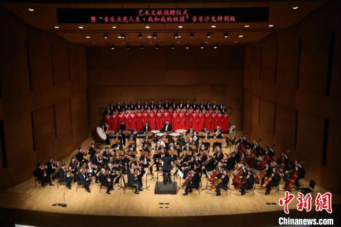 國(guó)家圖書(shū)館重要藝術(shù)文獻(xiàn)捐贈(zèng)儀式暨“音樂(lè)點(diǎn)亮人生·我和我的祖國(guó)——音樂(lè)沙龍?zhí)貏e版”活動(dòng)3日晚在國(guó)圖藝術(shù)中心·音樂(lè)廳舉辦。國(guó)家圖書(shū)館黨委書(shū)記、副館長(zhǎng)魏大威接受捐贈(zèng),并為捐贈(zèng)人代表中央民族歌舞團(tuán)民樂(lè)團(tuán)團(tuán)長(zhǎng)馬蘭花頒發(fā)捐贈(zèng)證書(shū)。