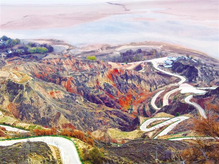 初冬時節(jié)的劉家峽庫區(qū)沿岸,盤山公路、丹霞地貌與碧水構成了一幅多彩畫卷