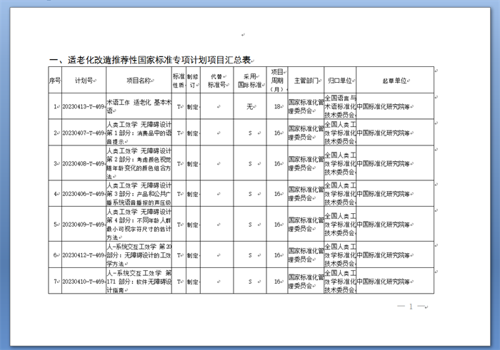 國家標準化管理委員會(以下簡稱國家標準委)發(fā)布《關于下達適老化改造推薦性國家標準專項計劃及相關標準外文版計劃的通知》(以下簡稱《通知》)。《通知》稱,為實施積極應對人口老齡化國家戰(zhàn)略,對照全國政協(xié)關于加快推進社會適老化改造的民主監(jiān)督事項,經研究,國家標準化管理委員會決定下達適老化改造推薦性國家標準專項計劃及相關標準外文版計劃(附后)。本批適老化改造領域推薦性國家標準專項計劃共計39項,其中制定35項、修訂4項。