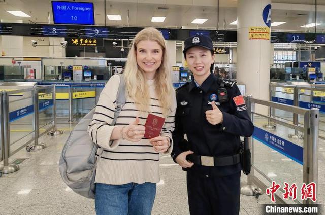 1月12日,挪威籍學(xué)生海琳(Helene)點(diǎn)贊皇崗邊檢站民警優(yōu)質(zhì)服務(wù)并合影留念。(皇崗邊檢站供圖)
