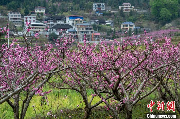 3月15日,在廣西田林縣浪平鎮(zhèn)浪平村,滿樹(shù)桃花與錯(cuò)落村舍相互映襯。黃數(shù)情 攝