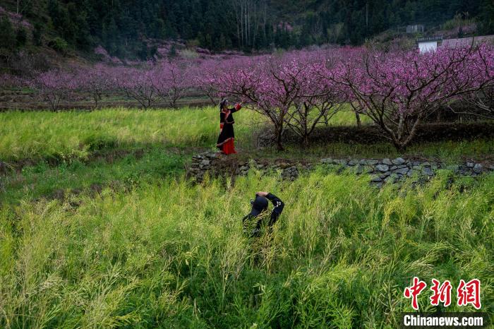 時(shí)下正是桃花盛開(kāi)的時(shí)節(jié),在廣西田林縣浪平鎮(zhèn)浪平村,村民種植的桃花競(jìng)相綻放。滿樹(shù)繁花與錯(cuò)落村舍相互映襯,還有樹(shù)旁玩耍的孩童、樹(shù)下勞作的村民,動(dòng)靜交織,構(gòu)成一幅絕美的田園春景圖。圖為3月15日,在廣西田林縣浪平鎮(zhèn)浪平村,村民在桃樹(shù)下勞作。黃數(shù)情 攝