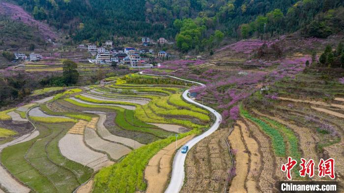 3月15日,在廣西田林縣浪平鎮(zhèn)浪平村,滿山盛開(kāi)的桃花美景如畫(huà)。黃數(shù)情 攝