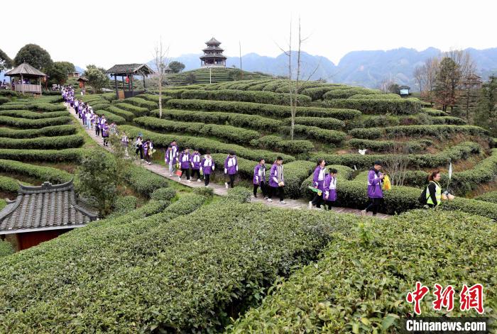 3月15日至16日,廣西柳州市一所中學(xué)組織千人研學(xué)團(tuán)到三江侗族自治縣八江鎮(zhèn)布央村仙人山景區(qū)開展茶文化研學(xué)活動(dòng),沉浸式采春茶、炒春茶、品春茶,深入了解茶種植、茶制作、茶文化、茶品鑒等知識(shí),進(jìn)一步培養(yǎng)實(shí)踐能力、提高勞動(dòng)素養(yǎng)。圖為研學(xué)活動(dòng)現(xiàn)場(chǎng)。龔普康 攝