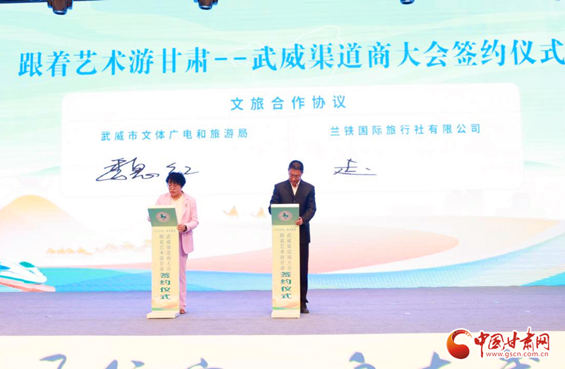 隨后舉行集中簽約儀式。武威市文體廣電和旅游局分別與中國旅行社協(xié)會鐵道旅游分會、甘肅蘭鐵國際旅行社有限公司簽署合作協(xié)議。