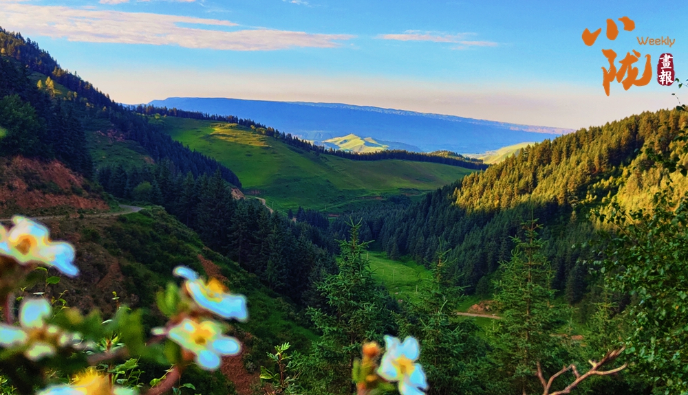 在起伏的丘陵間,廣袤的草原宛如少女柔美的曲線,美得簡直超出想象,綠草茵茵、繁花似錦,微風(fēng)吹過,濃郁的花香撲鼻而來。那連綿的群山、蜿蜒的河流,交織成網(wǎng),將這片土地滋潤成生命的綠洲。