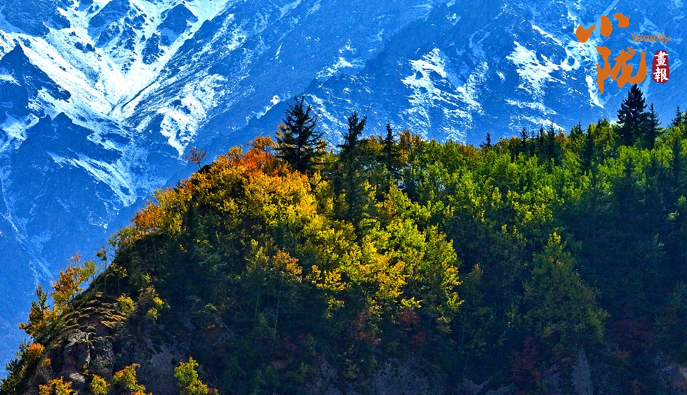 秋風(fēng)吹過,祁連山的原始森林悄然換裝。黃綠交織,紅金點(diǎn)染,仿佛大自然執(zhí)筆揮灑的油畫,靜謐而熱烈。尤其是在陽光的照耀下,與遠(yuǎn)處的雪山和湛藍(lán)的天空、潔白的云朵,形成鮮明的對(duì)比。
