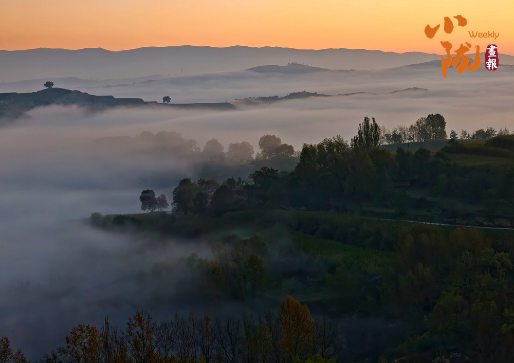 隨著秋意日漸濃厚,大北山層林盡染。晨霧在山間穿梭,如棉絮般輕柔,似輕紗般飄逸,時而翻滾涌動,時而靜靜飄浮,一幅濃墨重彩的山水畫卷緩緩鋪展開來……