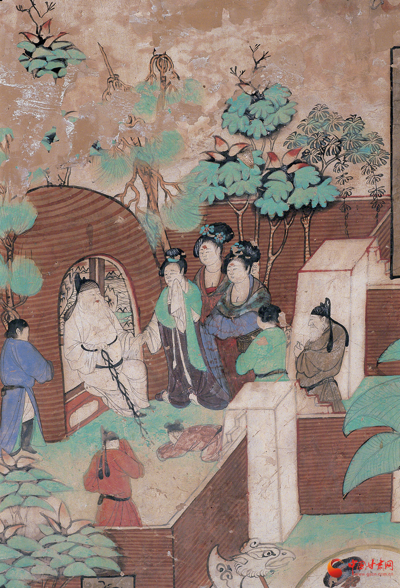 壁畫中的人情味同樣令人動(dòng)容。親屬送別的不舍與墓內(nèi)老者的平靜形成鮮明對(duì)比,既尊重宗教信仰中對(duì)死亡的超脫,又不回避人間情感的自然流露。這種“悲而不傷”的處理,體現(xiàn)了中國(guó)古代藝術(shù)對(duì)生死議題的獨(dú)特理解。