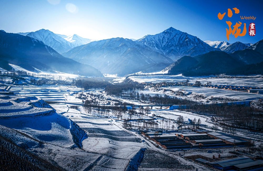 融雪斑駁似玉,在陽光的映照下熠熠生輝。輕柔鋪展的白雪將起伏的山巒、靜默的松林和山鄉(xiāng)小居悉數(shù)包裹,盡展初冬的浪漫與詩情畫意。