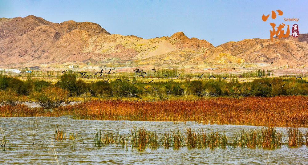 水草搖曳、波光粼粼、候鳥翻飛,湖泊與沙丘共存,藍(lán)天與碧水相接,集大漠戈壁、蘆葦、候鳥、湖泊于一體,構(gòu)成了一道獨(dú)特的自然景觀。